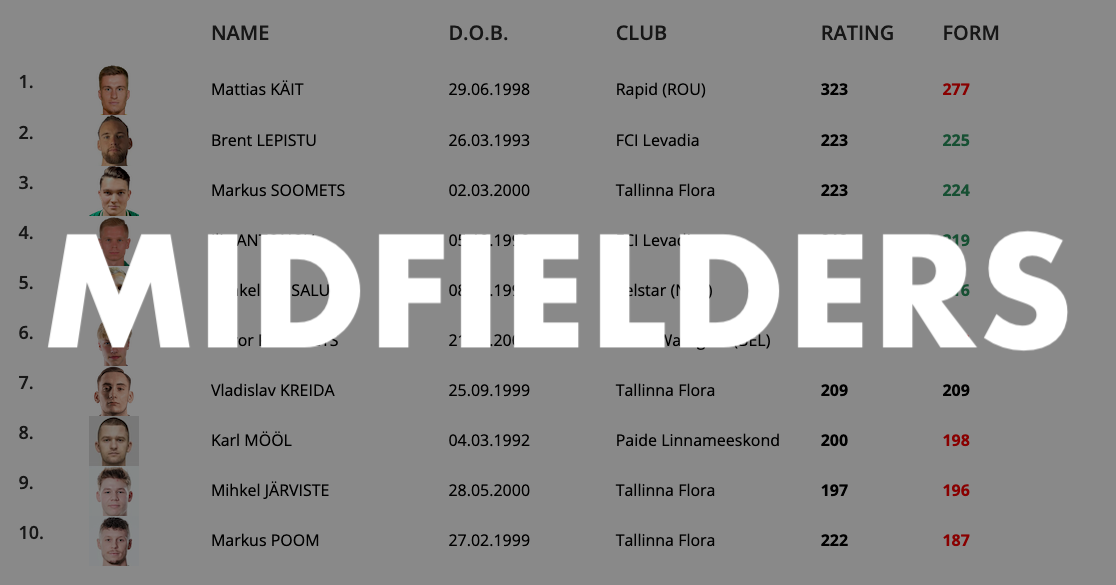 Premium liiga attacking midfielders Roosnupp, Miller & Paur comparison